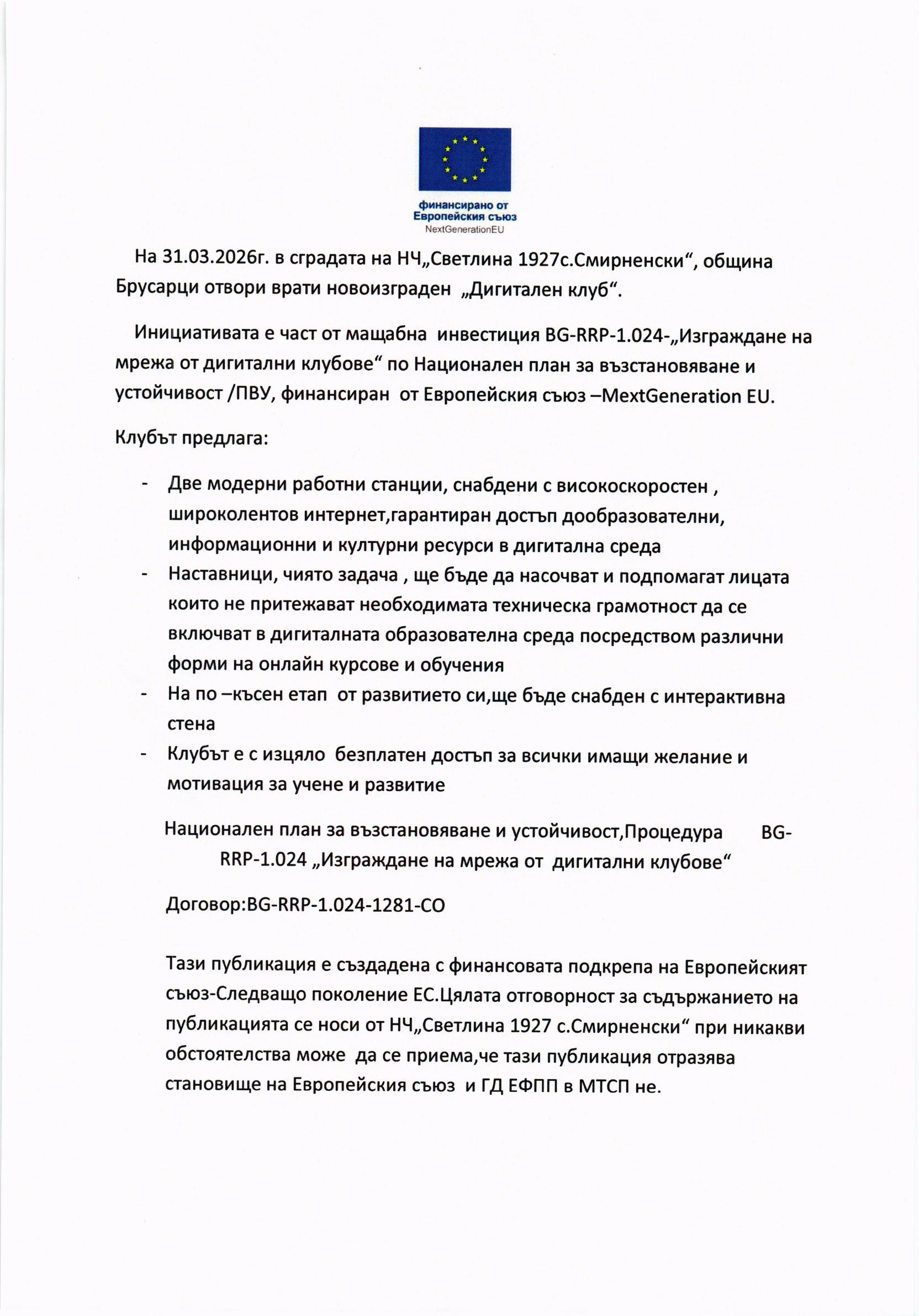 ПУБЛИЧНА ПОКАНА: СМР Поликлиника Брусарци